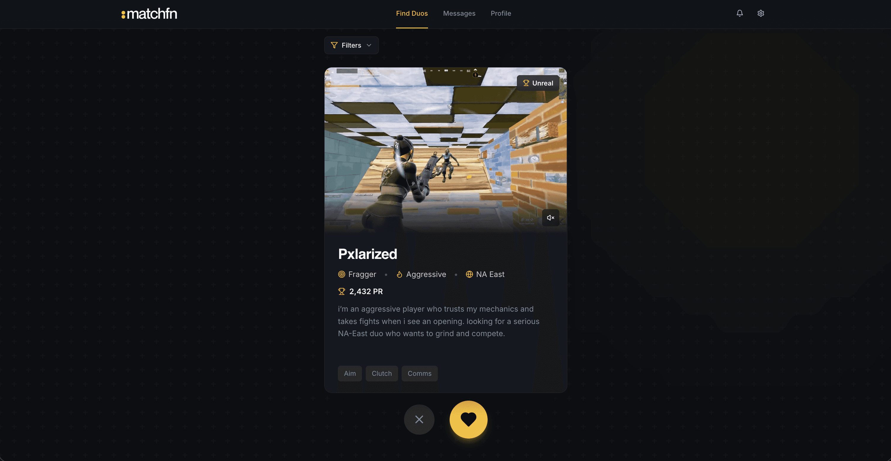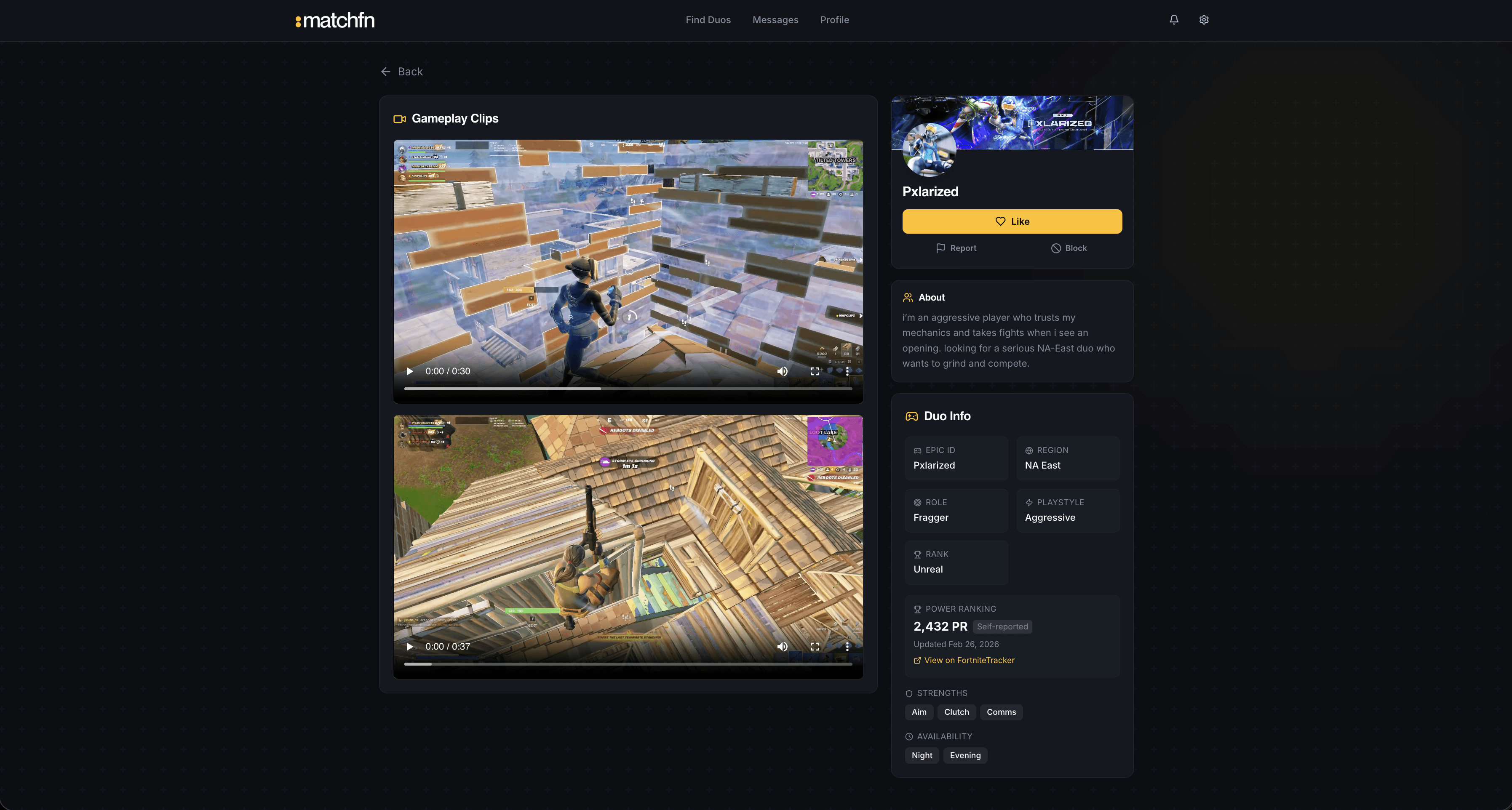 MatchFN introduced a structured matching system. Profiles focused on gameplay clips and competitive preferences. A video-first feed enabled quick evaluation, and conversation was unlocked only after mutual interest was confirmed.